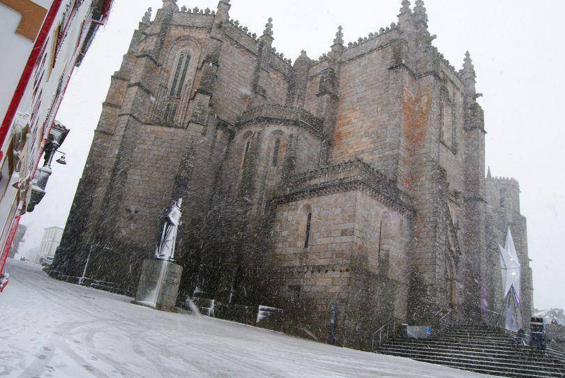 A neve continua a cair na Guarda de forma intermitente na manhã desta sexta-feira.