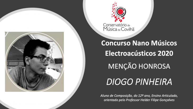 Diogo Pinheira, aluno do Conservatório de Música da Covilhã, obteve uma menção honrosa no concurso “Nano Músicos Eletroacústicos 2020”, onde apenas foi atribuído o primeiro prémio.
