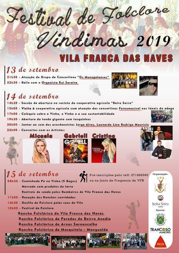 A quinta edição do Festival de Folclore – Vindimas 2019, organizada pela Cooperativa Agrícola Beira Serra com o apoio do Município de Trancoso, acontece este fim de semana, em Vila Franca das Naves.