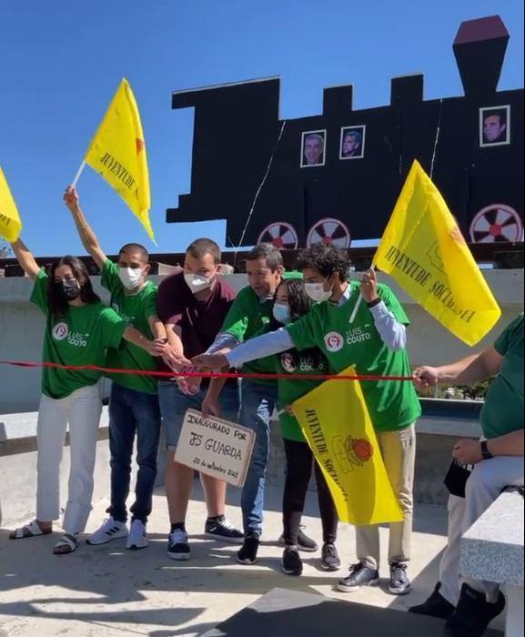 A JS da Guarda entrou em campanha esta segunda-feira com a “inauguração” da famosa locomotiva na rotunda junto ao Parque Urbano do Rio Diz, na Guarda-Gare.