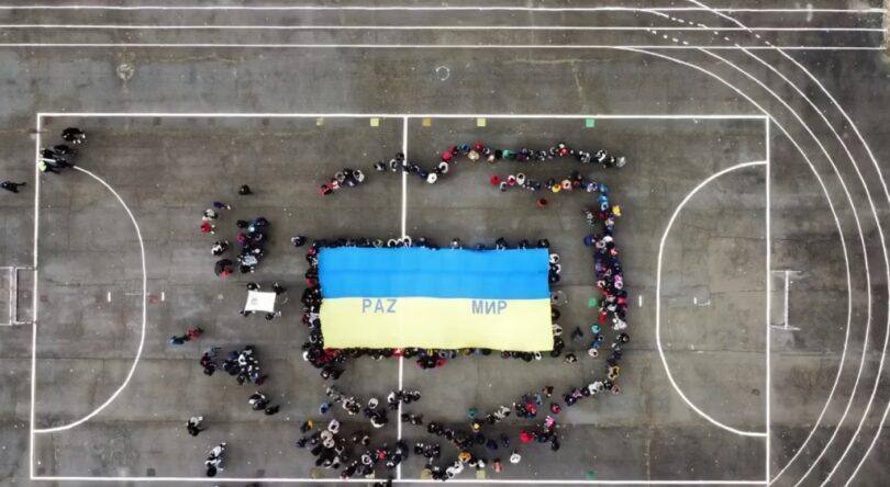 A iniciativa consistiu em expor a bandeira ucraniana no capo de jogos da Escola Secundária Gonçalo Anes Bandarra, onde estava escrita a palavra “paz” em português, assim como em ucraniano (мир).
