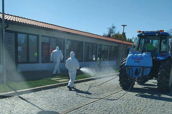 O Município de Trancoso deu ontem início «aos trabalhos de desinfeção dos arruamentos e espaços públicos com maior movimento (junto a padarias, instituições bancárias, farmácias, etc.) na sede do concelho».