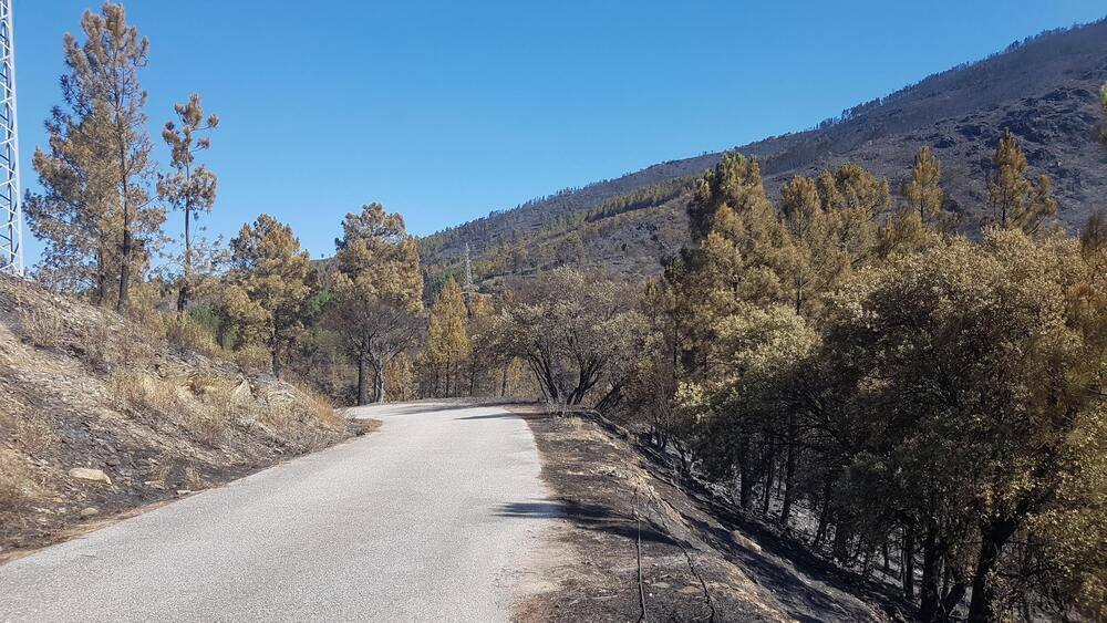 Veja o cenário devastador que o fogo deixou na zona do Sameiro, concelho de Manteigas. O incêndio que já lavra à seis dias e que começou no concelho da Covilhã entretanto chegou aos concelhos de Manteigas, Guarda, Gouveia e Celorico da Beira.