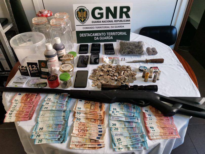 No decorrer das diligências policiais, a GNR deu cumprimento a nove mandados de busca, seis domiciliárias e três em veículos, que permitiram apreender 269 sementes e 48 doses de canábis, uma arma de ar comprimido, cinco zagalotes, dois punhais, duas caixas de chumbo de calibre 4.5 milímetros e 3.405,50 euros em numerário.