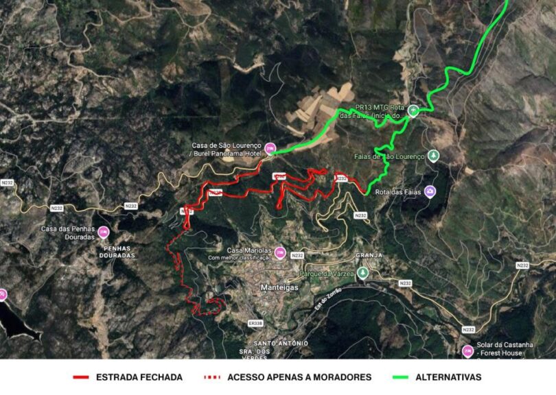 A Infraestruturas de Portugal encerrou ao trânsito, por completo, a Estrada Nacional 232 entre Manteigas e Penhas Douradas, na sequência da instabilidade de toda a vertente acima da Mata da Carvalheira, depois do cotovelo da estrada ter abatido esta semana. A estrada florestal entre São Sebastião e o Ribas deixou também de ser alternativa, permitindo-se a circulação apenas a moradores.