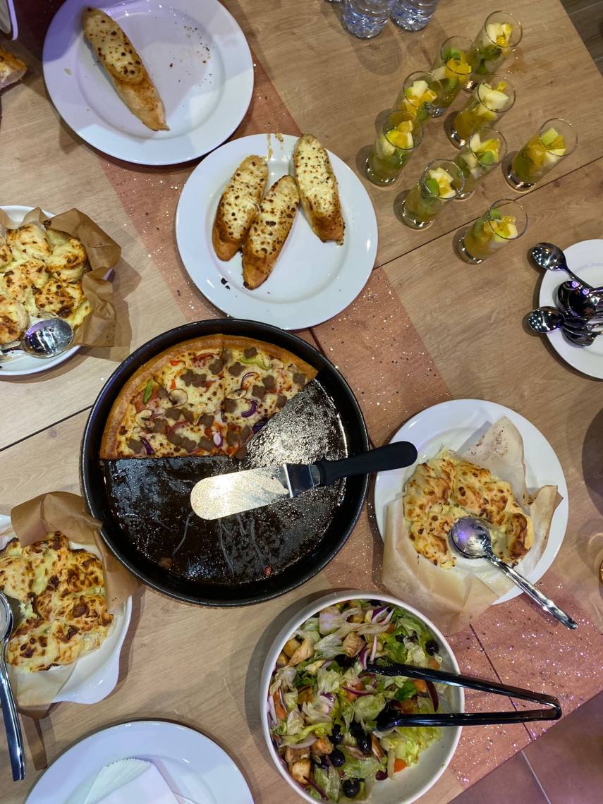 O restaurante tem disponível o serviço à mesa, no Restaurante, Balcão à fatia e Take Away.