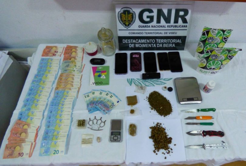 Segundo o Comando Territorial de Viseu, a ação foi realizada pelo Núcleo de Investigação Criminal (NIC) de Moimenta da Beira no passado dia 26 de junho no âmbito de uma investigação por tráfico de estupefacientes que decorria «há cerca de um ano». Os militares da GNR deram cumprimento a nove mandados de busca, cinco das quais domiciliárias, duas em estabelecimento comercial e outras duas buscas em veículos, que permitiram apreender «152 doses de haxixe, 54 doses de liamba, 990 euros em numerário, duas balanças digitais, cinco telemóveis, 16 munições, uma faca borboleta, uma soqueira e diverso material de corte e acondicionamento de estupefacientes».