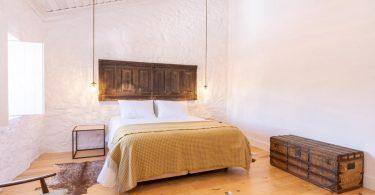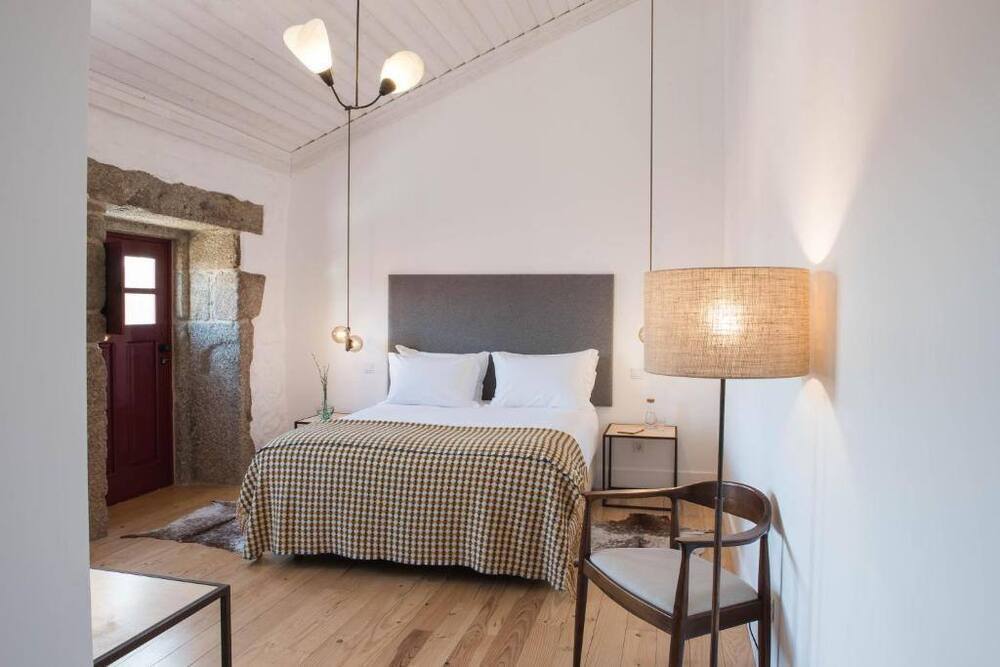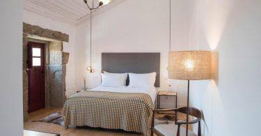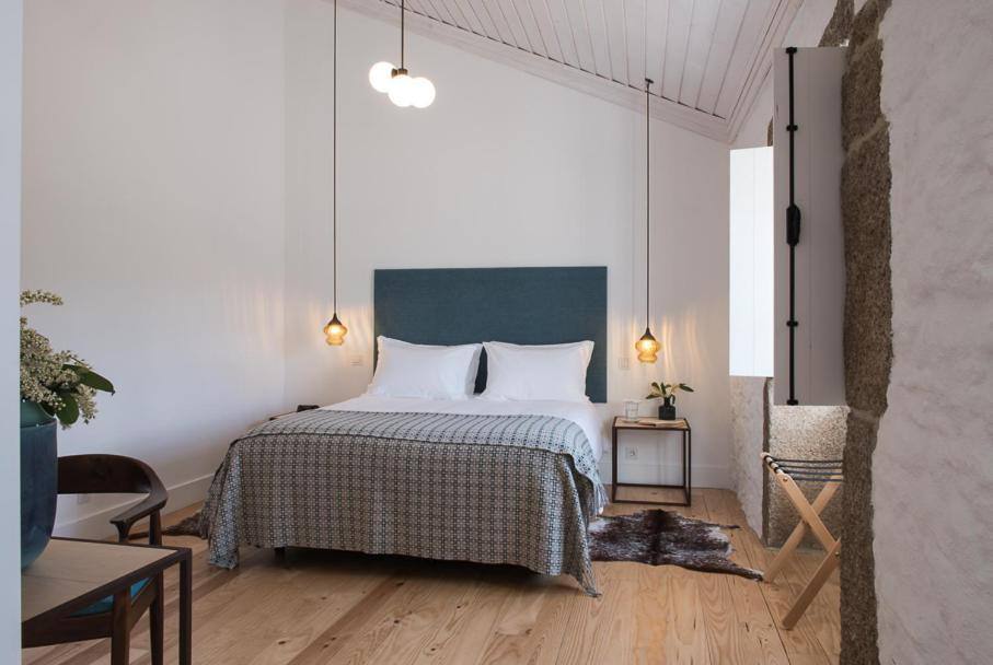 A decoração da quinta vem de materiais recuperados e também de produtos comprados na região, como as mantas de burel de Manteigas. O vinho e o queijo também são da região porque a Joaquim Canotilho não interessa ter «algo que quebre este ciclo». Das suites vê-se a silhueta da cidade, para norte, e o rio Noémi, ali ao lado, para sul. «Houve uma preocupação de fazer isto de maneira pensada», numa casa com paredes «com um metro de largura» que permitem uma boa regularização da temperatura dos quartos e com eletricidade produzida em painéis fotovoltaicos durante o dia, o edifício é autossustentável. Duas das suites caraterizam-se, para lá do espaço, pelas cabeceiras da cama, feitas a partir do «balcão da nossa antiga loja» e depois há o alpendre «onde, no Verão, servimos o pequeno-almoço».