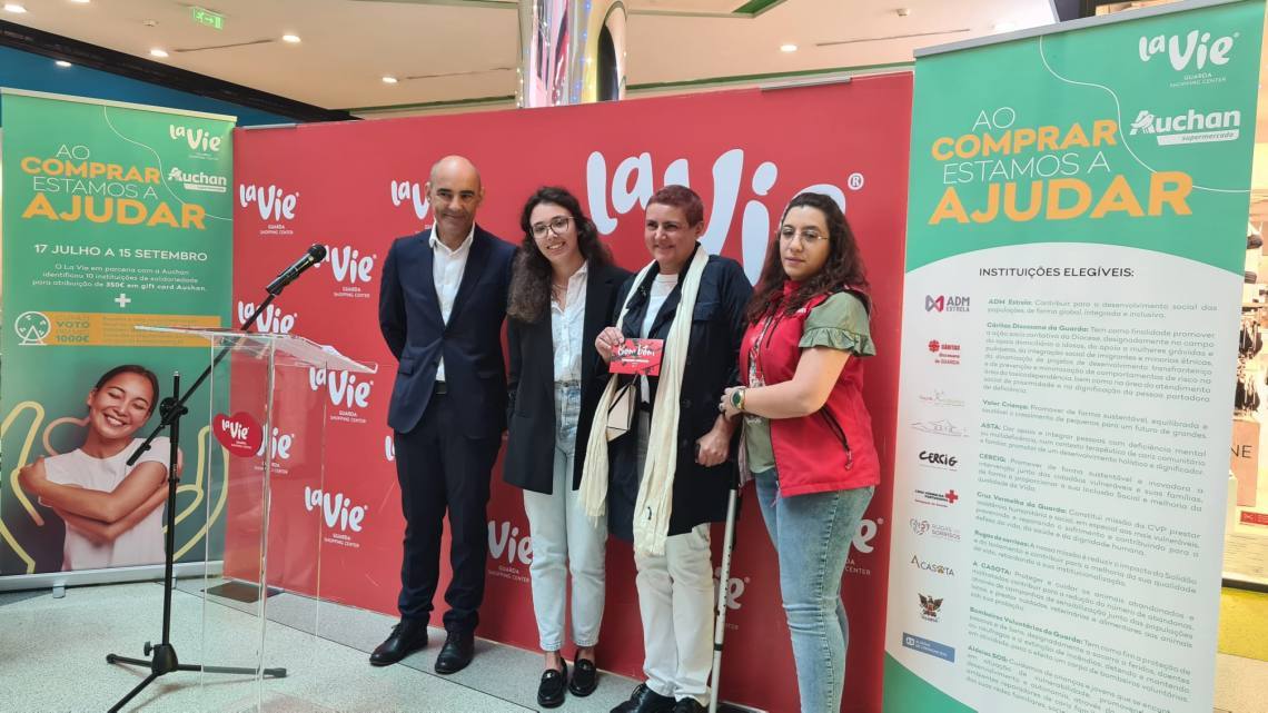 Esta quinta-feira o La Vie e o Auchan, na Guarda, entregaram Gift Cards a 10 instituições no âmbito da campanha “Ao comprar estamos a ajudar”. A coordenadora de marketing do Centro Comercial La Vie, Ana Batista, explica que «ao fazer compras superiores a 10 euros em qualquer loja do Centro Comercial, o cliente atribuiu cupões às instituições que pretendia ajudar». No final das contas, mais de 7 mil pessoas participaram na campanha e as 10 instituições da Guarda (ADM Estrela, Cáritas Diocesana da Guarda, Valor Criança, ASTA Terapêutica, CERCIG, Cruz Vermelha da Guarda, Rugas de Sorrisos, A CASOTA, Bombeiros Voluntário da Guarda e Aldeia SOS) receberam 350 euros.