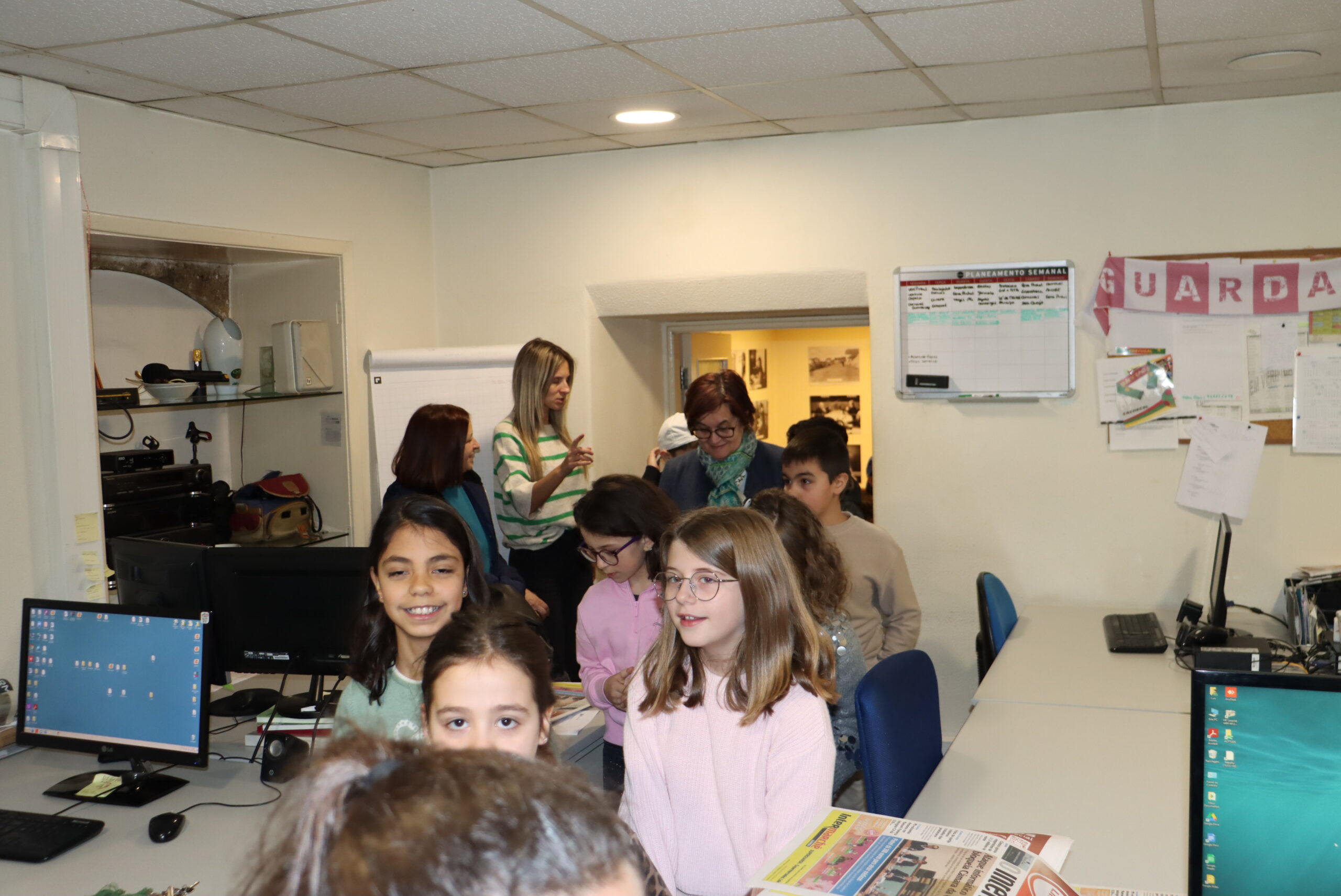 Os alunos do quarto ano da Escola Adães Bermudes, na Guarda, visitaram esta manhã a redação do Jornal O INTERIOR para conhecer o funcionamento deste meio de comunicação social. Num dia em que a edição 1.353 do semanário regional está a ir para as bancas, os jovens (que têm entre 9 e 10 anos) puderam acompanhar todo o processo de organização que, posteriormente, dá lugar à distribuição dos jornais na cidade mais alta.