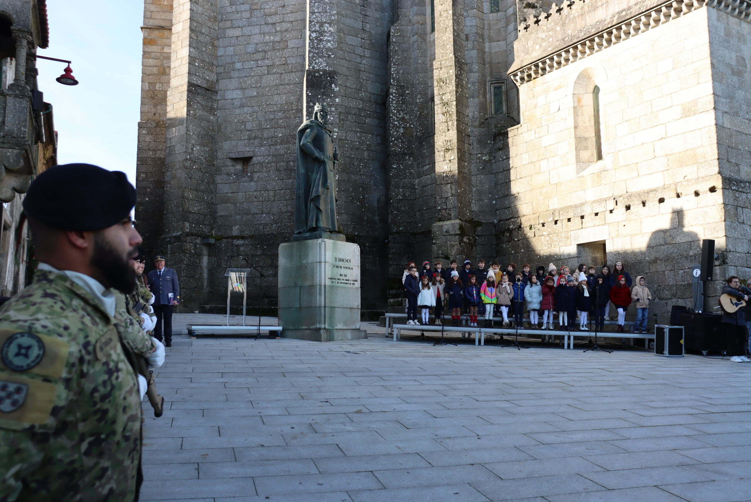O Dia da Cidade começou com uma cerimónia militar na Praça Velha, junto à estátua do Rei Fundador, com elementos do Regimento de Infantaria (RI) 14, de Viseu, e do núcleo da Guarda da Liga dos Antigos Combatentes, em homenagem a D. Sancho.