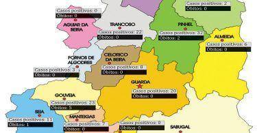 Registo também para o aumento dos contactos vigiados pela USP, que subiram para 2.086 (+74 que no relatório anterior). A nível concelhio não alterações além da verificada na Guarda: Almeida (6), Celorico da Beira (8), Figueira de Castelo Rodrigo (2), Fornos de Algodres (3), Gouveia (23 e 5 óbitos), Guarda (20), Manteigas (7), Pinhel (32 e 2 óbitos), Sabugal (1), Seia (11 e 1 óbito), Trancoso (22) e Vila Nova de Foz Côa (92, 8 óbitos e 80 recuperados).