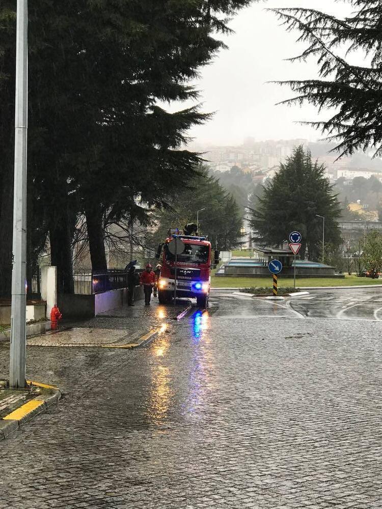 (Na foto: Bombeiros da Guarda cortam ramos de árvores como forma de prevenção)