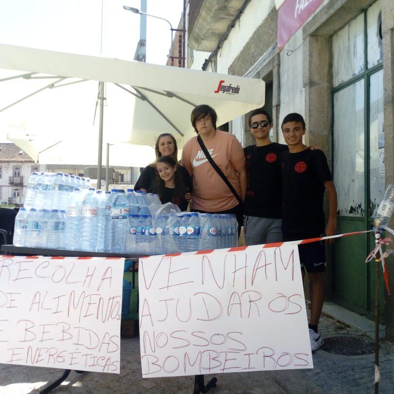 Um grupo de jovens da Guarda, elementos da claque “5 F’s” do Guarda Desportiva, está na rua esta quinta-feira a recolher água, bebidas e alimentos energéticos para entregar aos bombeiros que estão a combater o fogo na Serra da Estrela.