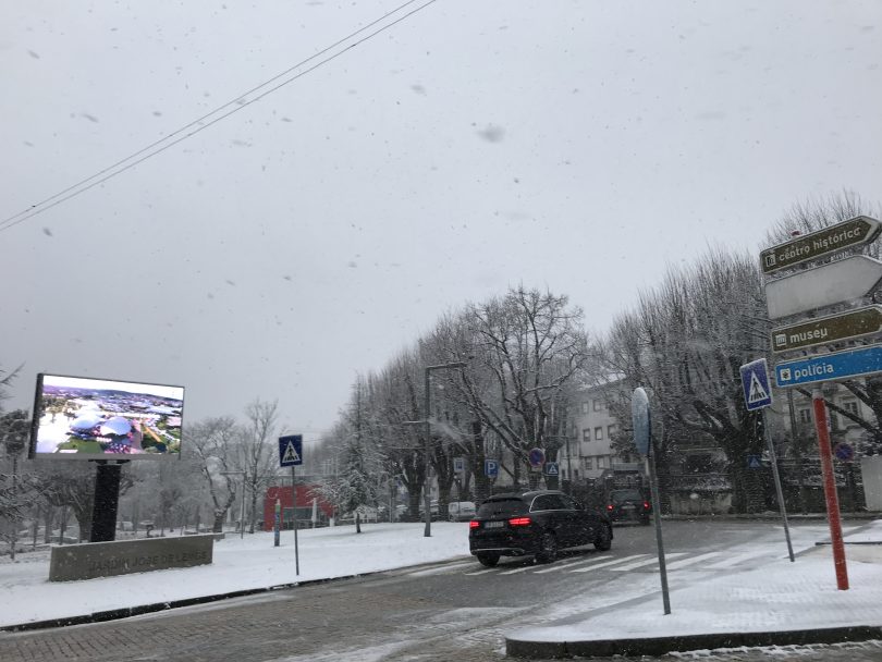 A cidade da Guarda acordou com muito frio e a chegada da neve. A partir das sete da manhã, e depois de uma noite de muito vento, começou a nevar com intensidade na cidade mais alta.