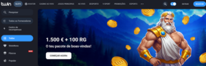 Dentro deste pacote de boas-vindas, a Twin oferece 100 jogadas grátis no popular slot Gates of Olympus 1000, da Pragmatic Play.