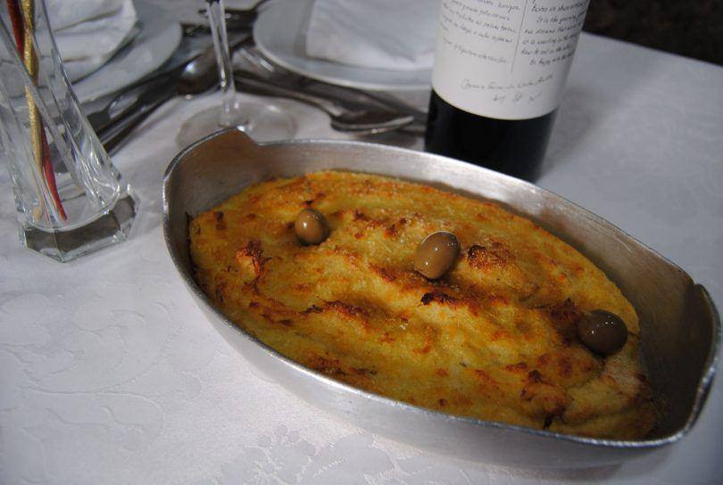 Bacalhau desfiado, envolto em batata e natas – com uma quantidade generosa de azeite e alho à mistura – a que se junta pão e queijo ralado no topo para tostar no forno. Esta é a essência do famoso Bacalhau à Conde da Guarda, cuja cremosidade da mistura de bacalhau contrasta com a superfície crocante do queijo derretido. A história da receita não é, no entanto, consensual e tem quase tantas versões quanto interpretações do prato.