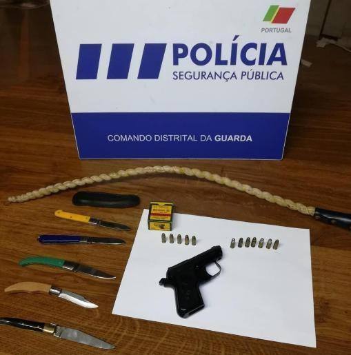 O Comando Distrital da PSP da Guarda deteve, ontem, um homem de 61 anos de idade, por posse de arma proibida e munições de arma de fogo. A detenção ocorreu na sequência de uma denúncia por crime de violência doméstica, que desencadeou uma busca domiciliária à residência do suspeito, onde foram apreendidas uma arma de fogo, 12 munições de calibre 6,35 mm, cinco navalhas e um chicote.