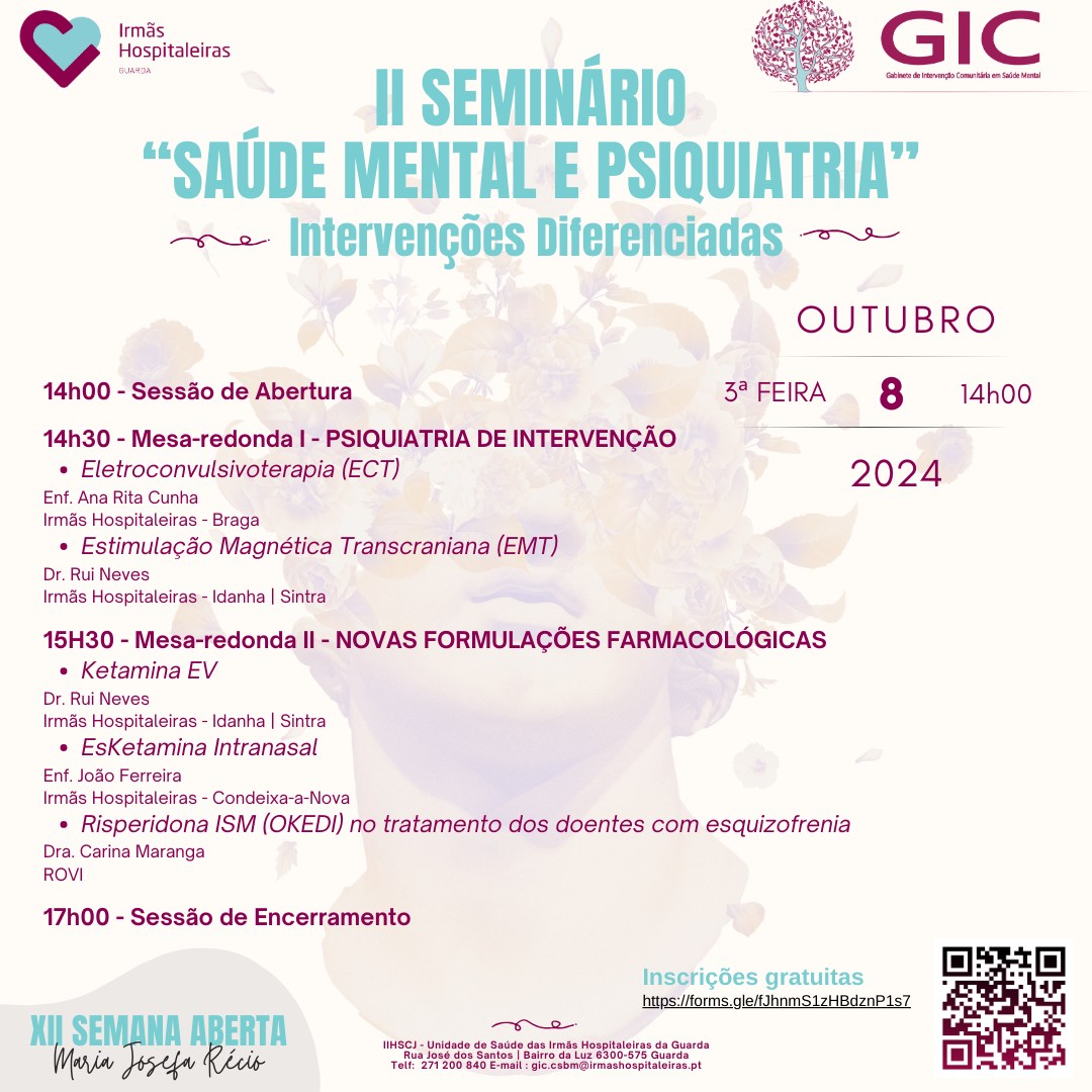 Esta terça-feira a “Saúde Mental e Psicoterapia” são assunto de conversa num seminário realizado na Casa de Saúde Bento Menni, na Guarda. O tema central é “Psicoterapia assistida por ketamina: os riscos de uma promessa transformada em panaceia”.