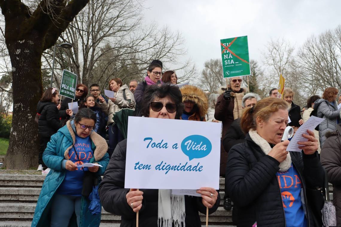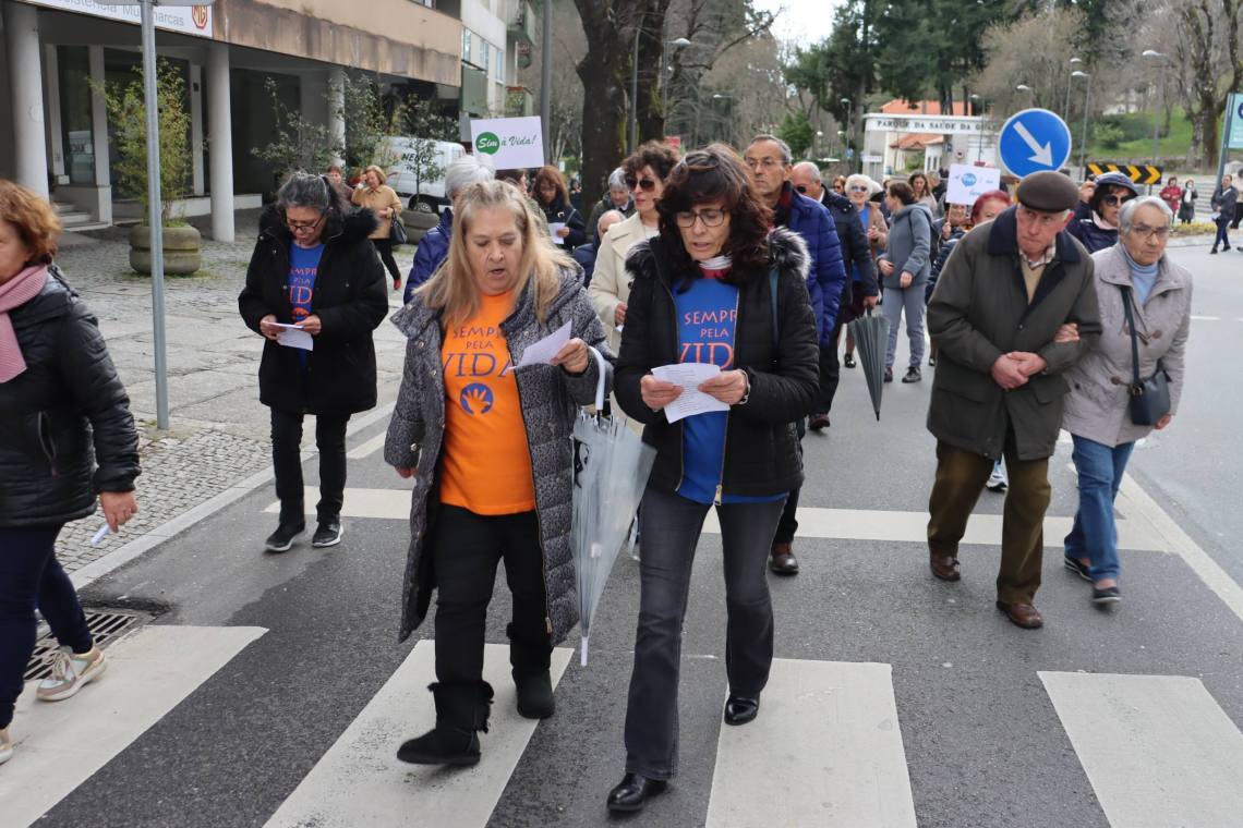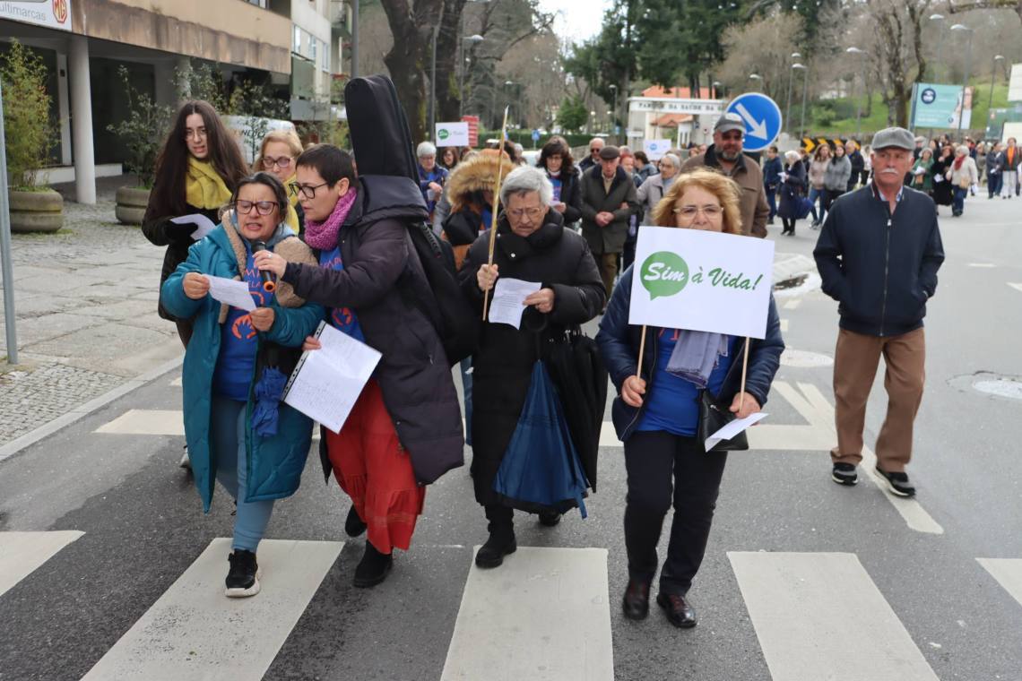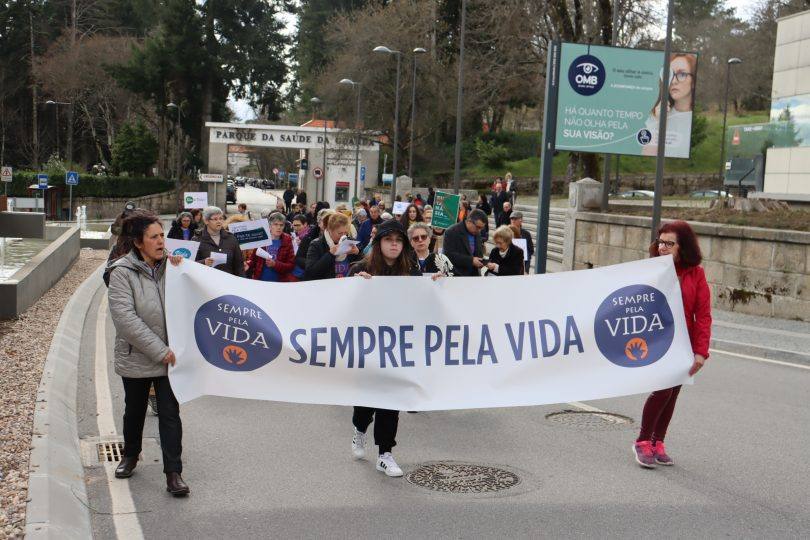 Com palavras de ordem contra a eutanásia e o aborto, e de defesa pela vida, os participantes saíram da Alameda de Santo André e atravessaram o centro da cidade até à Praça Velha.